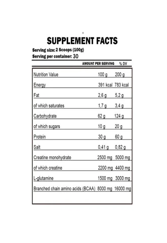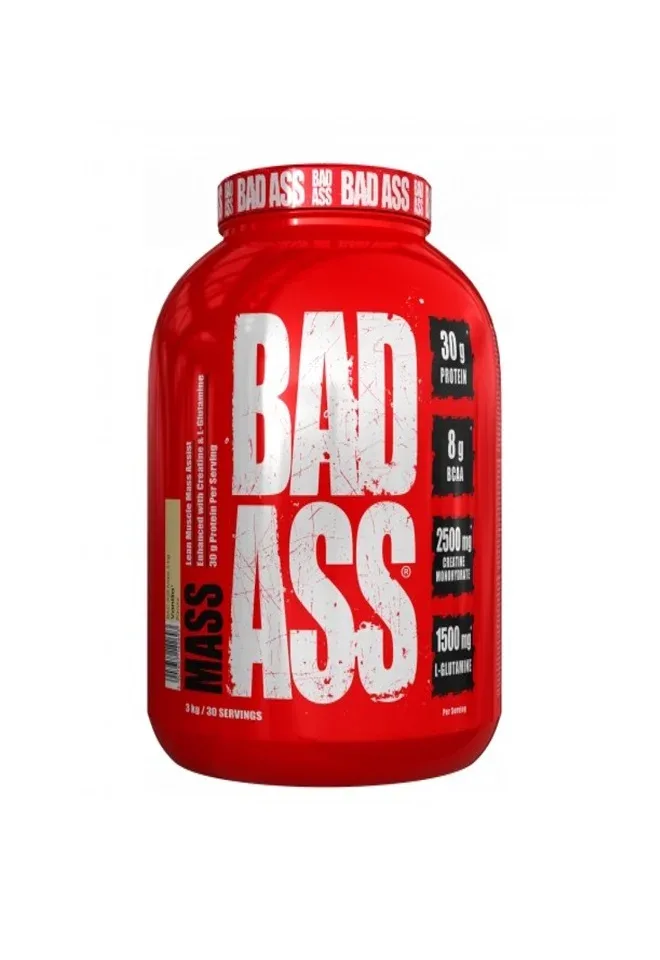 BAD ASS MASS gainer is a product enriching the daily diet with a complex of complete proteins and carbohydrates, supplemented with optimally specified servings of creatine monohydrate and L-glutamine. The proposed formula will prove useful as a form of support during mass building and modeling of a muscular body. The product has been prepared in the form of an easily soluble powder, which makes it possible to prepare a delicious and nutritious shake with incredible taste. The supplement is recommended for people seeking a convenient source of valuable calories and essential nutrients – the preparation is recommended for amateur and professional enthusiasts of strength and endurance sports.