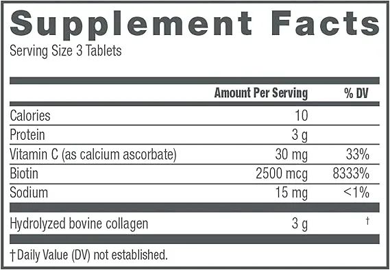 COLLAGEN PILLS: One 270 count bottle of NeoCell Super Collagen Tablets With Vitamin C and Biotin, a supplement that supports skin, hair, nails and joint health to promote your beauty within (1) HYDROLYZED COLLAGEN: Each serving contains 3 grams of types 1 and 3 grass-fed collagen peptides to support your skin health and provide skin the building blocks it needs for collagen formation (1) BIOTIN AND VITAMIN C TABLETS: Collagen supplement with biotin to help support healthy hair and nails, plus essential vitamin C for antioxidant support and to promote healthy collagen formation (1) ALLERGY-FRIENDLY: IGEN Non-GMO tested (2), this supplement is keto certified and gluten-free with no soy, wheat, lactose or artificial flavors, for a skin care and joint supplement for almost everyone HOW TO TAKE: Taking these NeoCell collagen supplements is easy—simply take three tablets daily to boost your beauty from the inside out and support skin, hair, nails and joint health (1) TRUSTED COLLAGEN BRAND SINCE 98: Established 1998, NeoCell is one of the most trusted brands of collagen, helping you to illuminate your beauty inside and out to amplify your brilliance and confidence THE BEST SELF FOR EVERYDAY HEALTH: NeoCell has stayed in step, if not ahead of, the science ever since—researching sources and the most effective forms of collagen so you can be the best you, everyday CLAIM: (1) These statements have not been evaluated by the Food and Drug Administration; this product is not intended to diagnose, treat, cure or prevent any disease; (2) it has no GE genes or protein