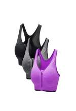 high impact level support with a secure front clip and zipper easy on and off moisture wicking fabric keeps you cool and dry removeable pads for shaping and support